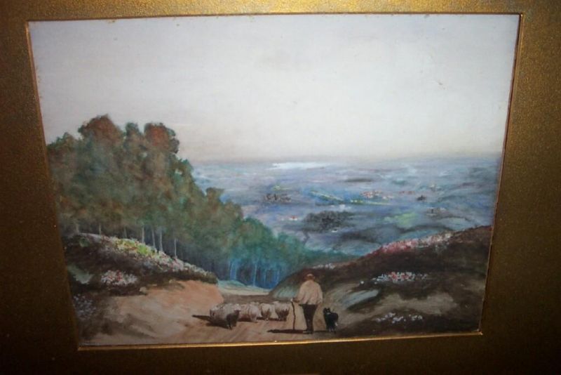a country landscape with shepherd and his flock