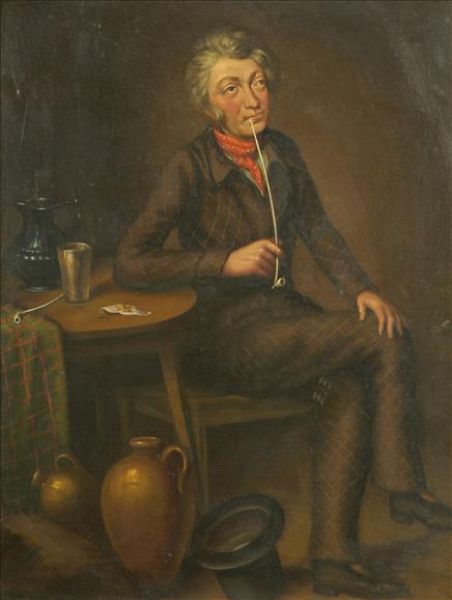 Interior with figure smoking a churchwarden pipe