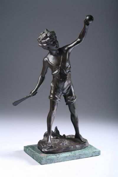 Bronze dark brown patina, on green marble base