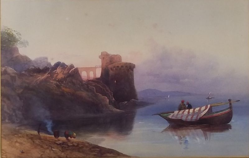 seascape with a castle on a rocky shore