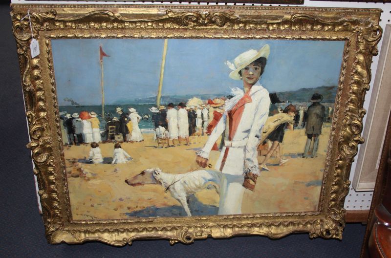 'Dieppe' (Study of an Elegant Lady with a Dog, other Figures on the Beach)