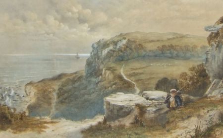 Young Traveller on a Cliff Top Path, Boat in Distance