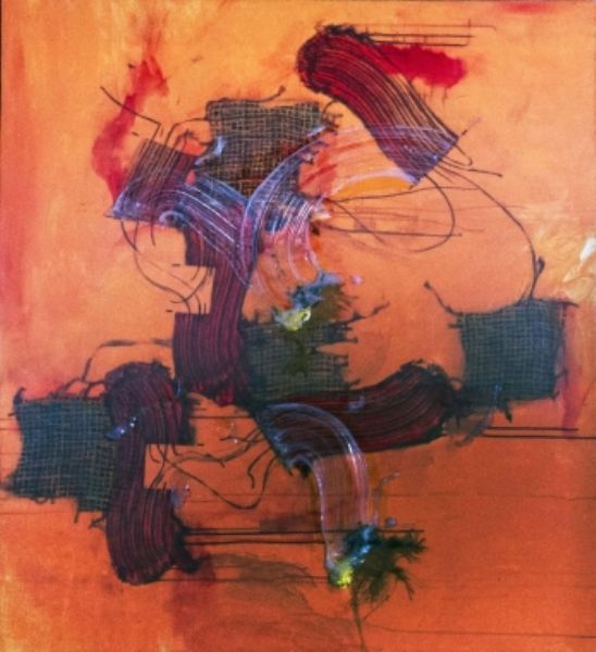 Acrylic burlap, and mixed media on canvas