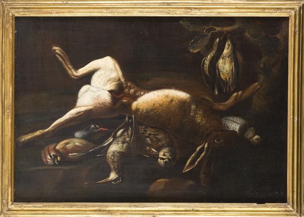 NATURA MORTA CON CACCIAGIONE E CANE