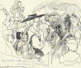 | Mrs Roosevelt hosting a reception at the Presidential Building, Chicago | |