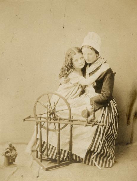 | Scène de genre, mère et sa fille au rouet, portrait d'homme costumé | |