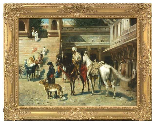 The Maharaja's entourage waiting in a courtyard