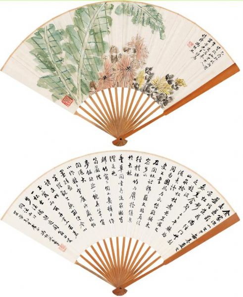 PLANTAIN AND CHRYSANTHEMUMCALLIGRAPHY IN RUNNING SCRIPT