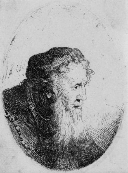 | Bärtiger alter Mann mit Kappe im Profil nach rechts (Ovale Platte). | |
