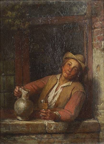 A young boy at a tavern window