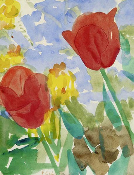 Rote Tulpen mit Frühlingsblumen. 1954.