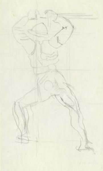 Studie zum Eidgenossen mit erhobenem Schwert.