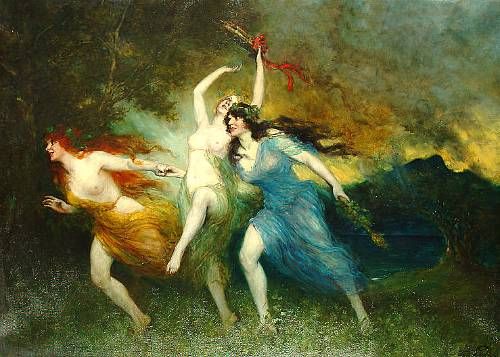 Three nymphs in a glade