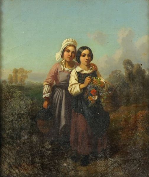 DEUX JEUNES FILLES DANS UN PAYSAGE