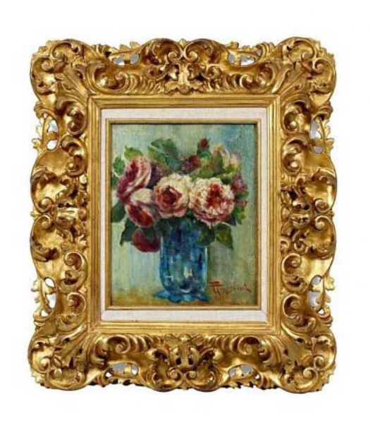 BOUQUET DE PIVOINES DANS UN VASE BLEU
