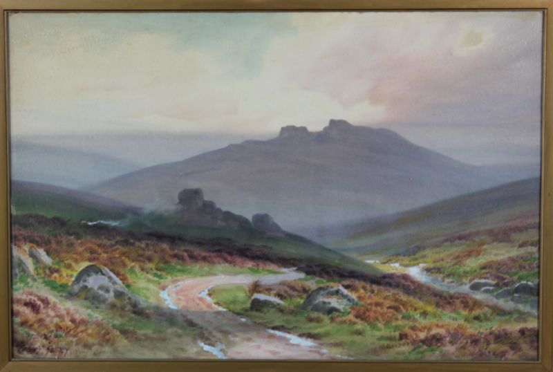 Edwardian moorland scene with distant hills