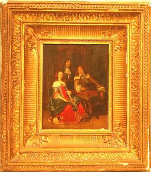 | Interior genre scene with figures in 19th Century Continental dress | |