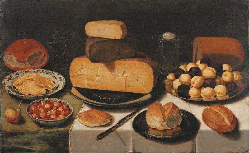 | Nature morte aux fromages, aux fruits et fraises des bois, et aux pains | |