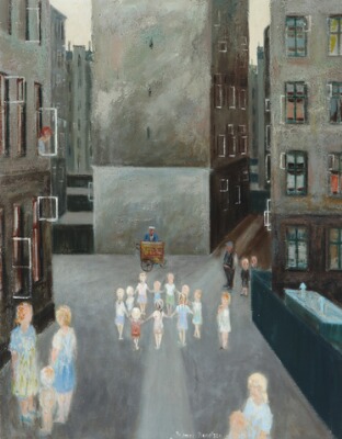 | Scenery from a backyard with children dancing to the barrel organ | |