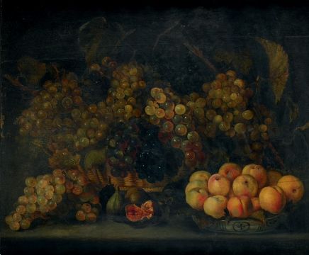 Nature morte à la corbeille de raisins, plat de pèches et figues