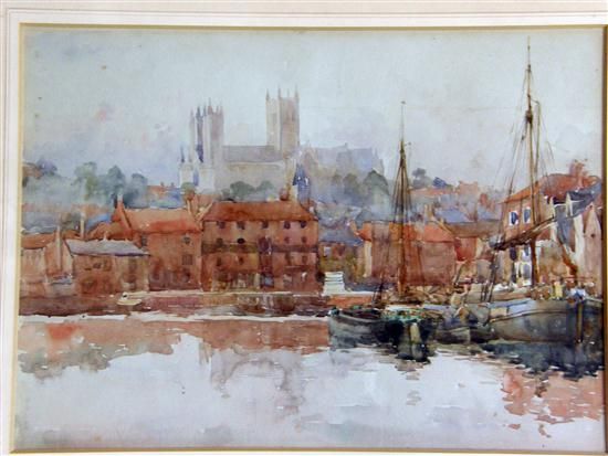 Lincoln Cathedral with boats in the foreground