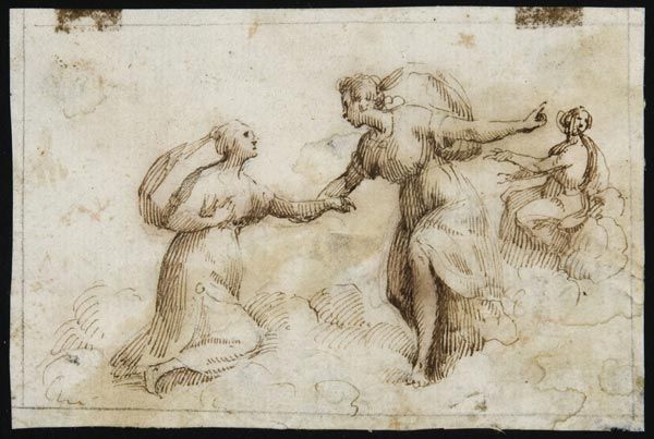 STUDIO CON TRE FIGURE FEMMINILI TRA LE NUBI