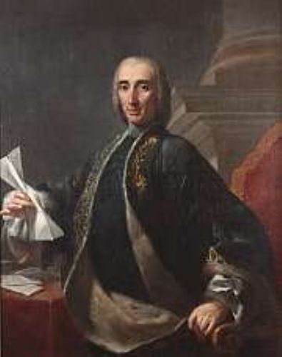 | Portrait of a gentleman, seated half-length, at a table, in a dark blue ermine-trimmed coat, holding a letter, before a column | |