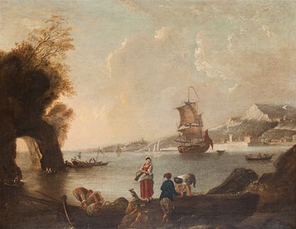 Marina con pescatori in riva