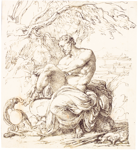 | Pen and dark brown ink over traces of black chalk | |