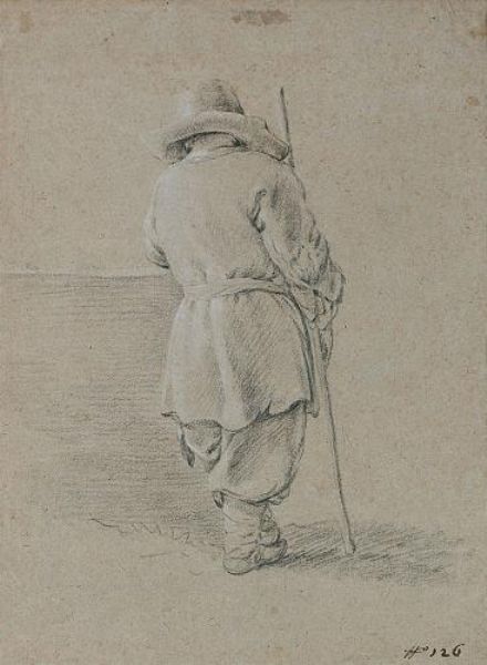 CONTADINO CON LUNGO BASTONE VISTO DI SPALLE