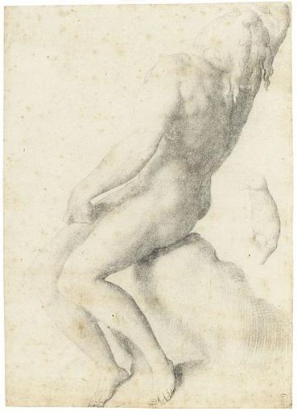 | Chalk black chalk and stumping, the toes reinforced with pen and brown ink | |