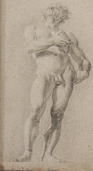 | Two studies of male nudes, one inscribed at bottom Solimena a la cupola de.. | |