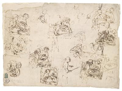 | A study sheet comprising a double page: sketches for a scene with two figures | |