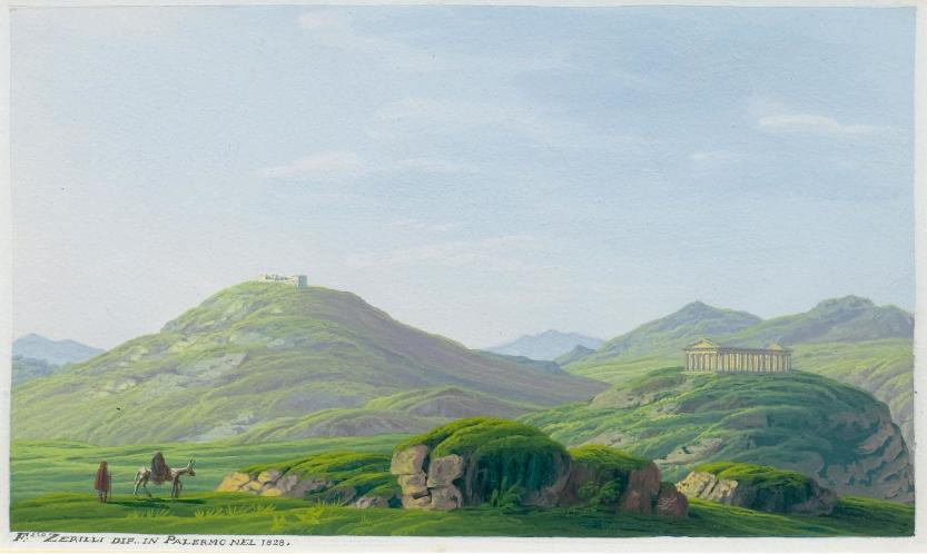| Landscape with view of the Temple of Ceres in Segesta. | |