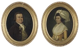 | Portrait of a gentleman, small-half-length, in a yellow and blue striped waistcoat and brown coat; and Portrait of a lady, small | |