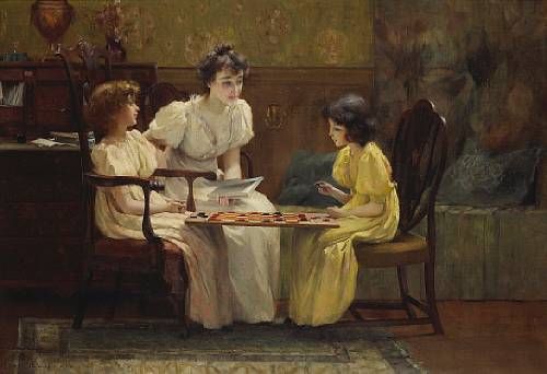Young girls playing checkers