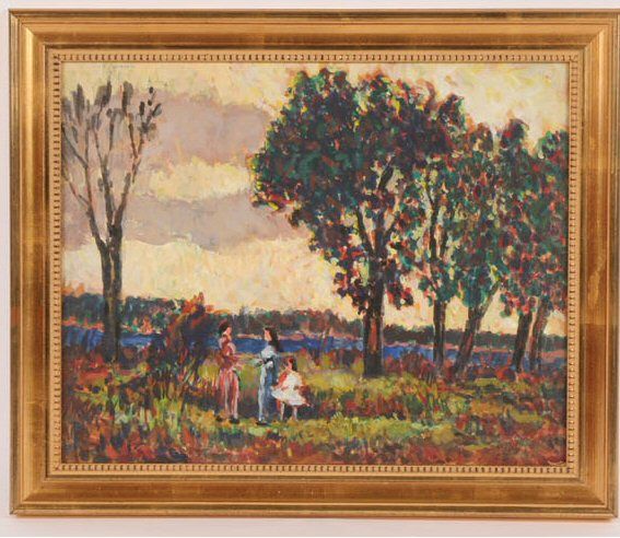 Post Impressionist figures in a landscape