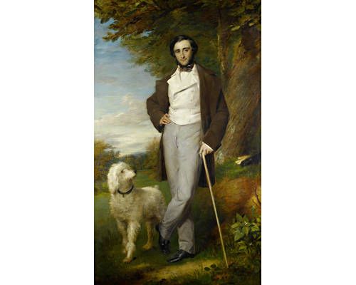 | Portrait of a gentleman standing in parkland with his poodle | |