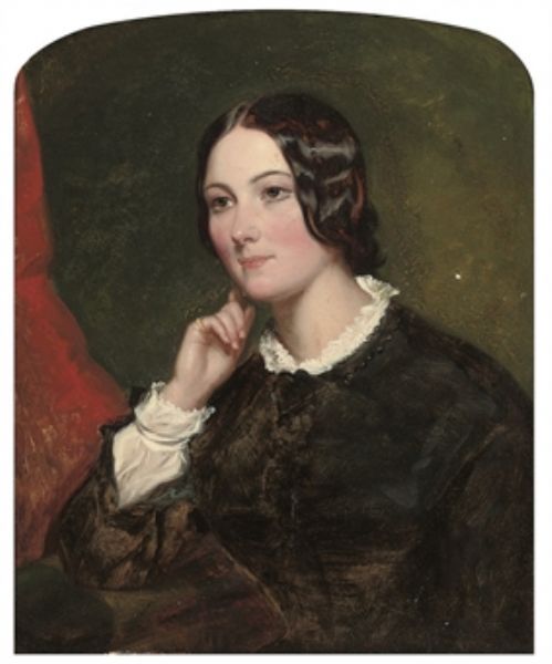 | Portrait of a young lady, half-length, in a black dress with white collar and cuffs | |