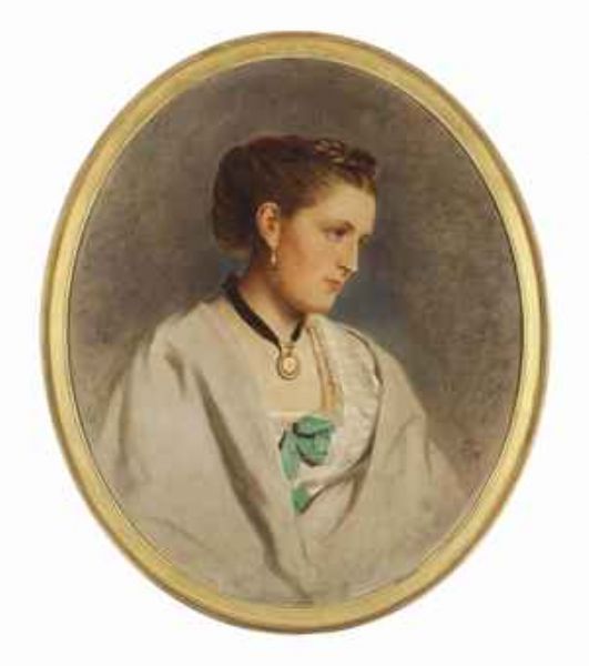 | Portrait of a lady, bust-length, in a white dress and wrap | |