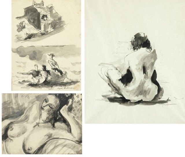 Three Drawings i. Seated NudeLymburne
