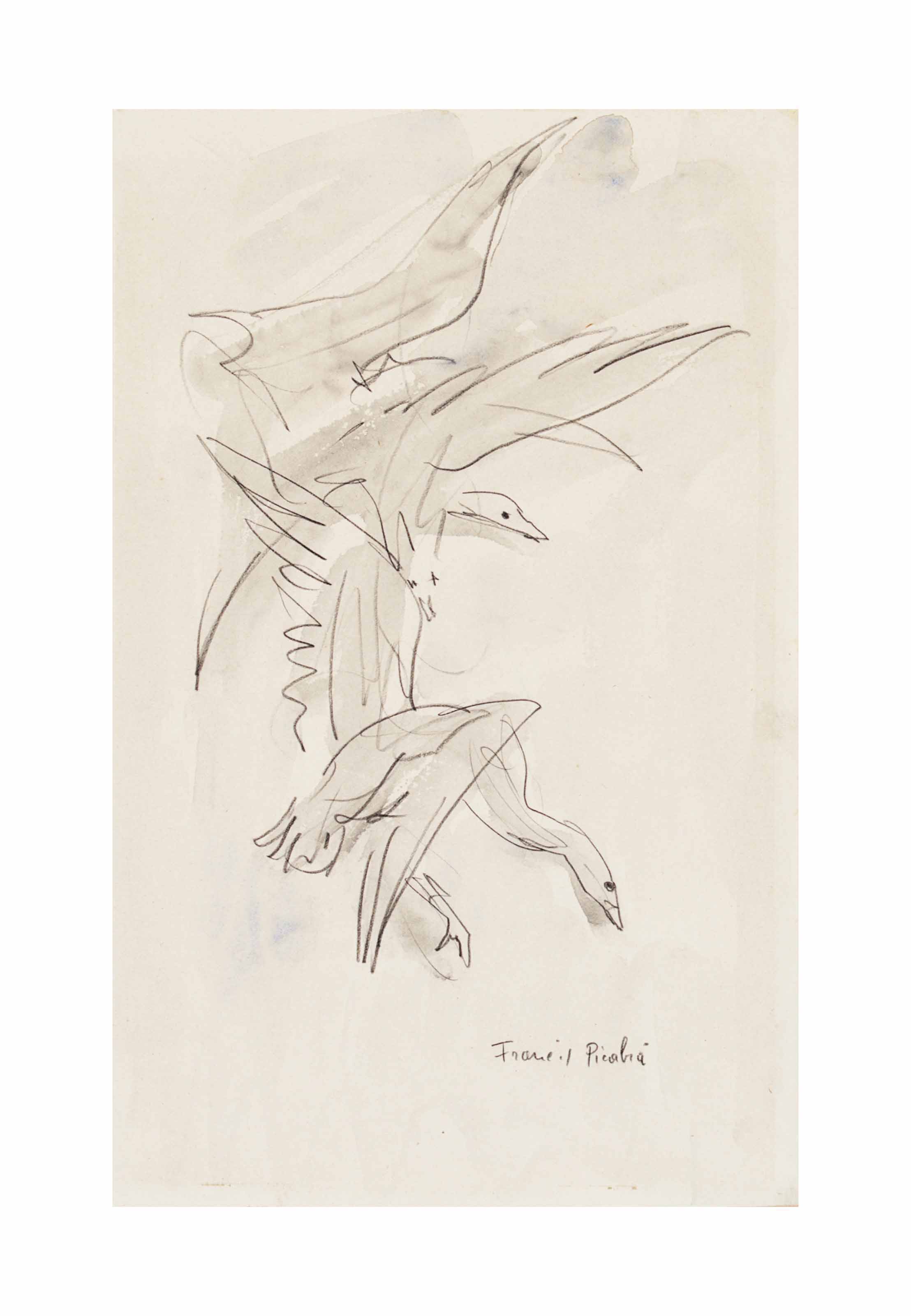 | Brush and blue and gray wash over black Conté crayon on paper laid down on card | |