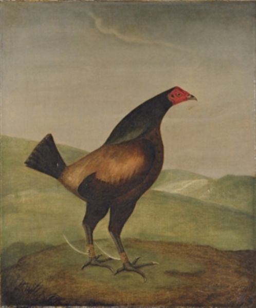Lord Egremont's Dauntless; a fighting cock in a landscape