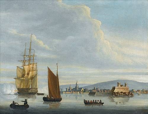 A frigate announcing her departure from a Continental port