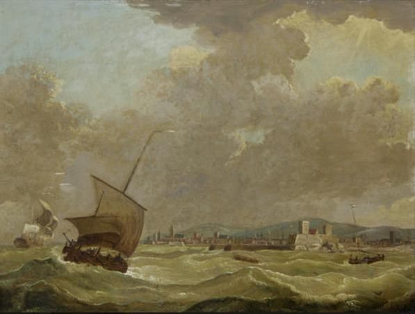 | Saluting the flagship off Dover; A French man-o'war and other shipping in a heavy swell off Dunkirk, a pair | |