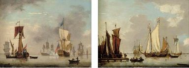 | Shipping in calm waters, a flagship firing a salute; and Shipping in calm waters, with a jetty in the foreground | |