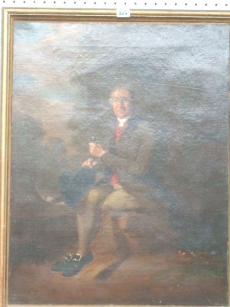 | Portrait of a gentleman, full length seated in a landscape holding a tricorn hat | |