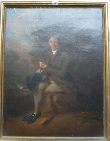 | Portrait of a gentleman, full length seated in a landscape holding a tricorn hat | |