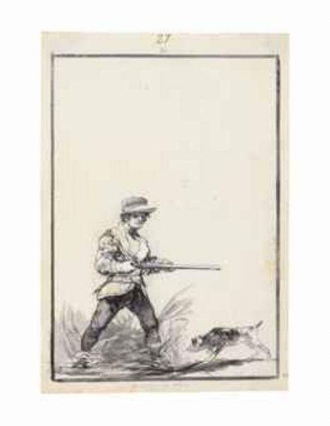| Brush and Indian ink and wash, with scraping (especially visible on the hunter's jacket), brush and wash framing lines, watermark J HONIG | |