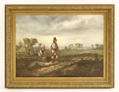 FIGURES DIGGING VEGETABLES IN A FIELD